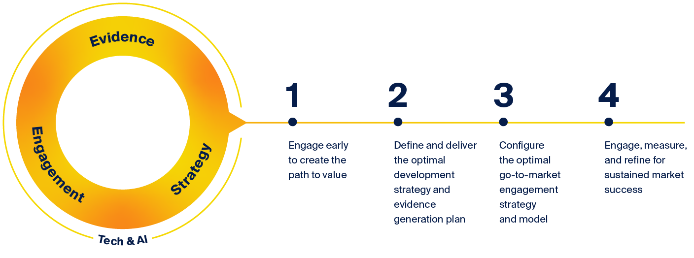 Our capabilities in strategy, evidence, engagement, and technology and AI converge to create breakthrough value. By identifying key inflection points that can significantly impact value, our experts ensure that every strategic decision contributes to a medicine’s success in reaching patients and improving their outcomes.